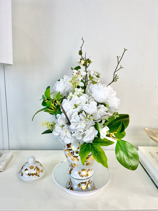Luxe Real Touch Artificial Flower Arrangement, Ginger Jar Table Decor