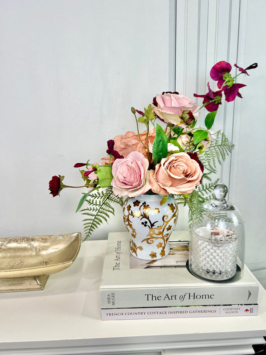 Lush Faux Flower Centerpiece for Coffee Table or Entryway