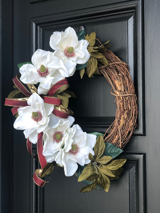 White Magnolia Wreath, Modern Farmhouse Wreath - Made to Order