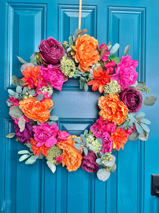 Bright Summer Floral Wreath for Front Door - Made to Order